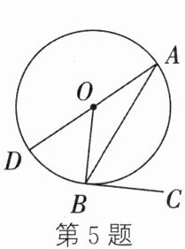 5. (2023·邵阳)如图,AD是$\odot O$的直径,AB是$\odot O$的弦,BC与$\odot O$相切于点B,连接OB.若$\angle ABC= 65^{\circ },$则$\angle BOD$的度数为______.