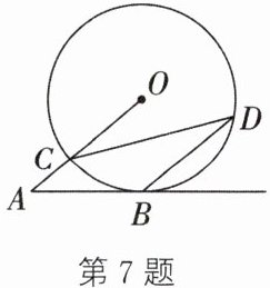 7. (易错题)(2023·眉山)如图,直线$AB与\odot O相切于点B$,连接$OA$,交$\odot O于点C$,$BD// OA交\odot O于点D$,连接$CD$.若$\angle OCD= 25^{\circ }$,则$\angle A$的度数为(