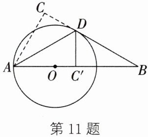 11. (2024·崇川期中)如图,将$\mathrm{Rt}\triangle ABC沿过点A$的直线翻折,直角顶点$C的对应点C'落在边AB$上,折痕为$AD$,点$O在边AB$上,$\odot O经过点A$,$D$.