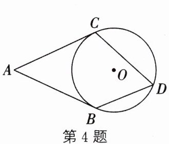 4. (2023·嘉兴)如图,A是⊙O外一点,AB,AC分别与⊙O相切于点B,C,点D在$\overset{\frown}{BDC}$上.已知∠A= 50°,则∠D的度数为______.