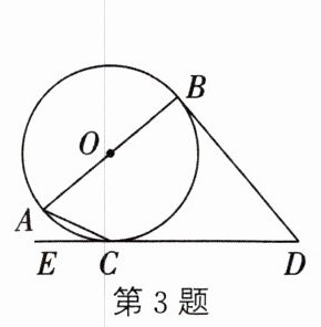 3. (2023·海安期中)如图,AB是⊙O的直径,DB,DE是⊙O的两条切线,切点分别为B,C,连接AC.若∠ACE= 25°,则∠D的度数为 (