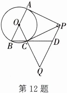 12. 如图,AB为⊙O的直径,PA,PC分别与⊙O相切于点A,C,PQ⊥PA,连接OC并延长,交PQ于点Q.