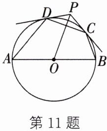 11. 如图,AB是⊙O的直径,过⊙O外一点P作⊙O的两条切线PC,PD,切点分别为C,D,连接OP,CD.