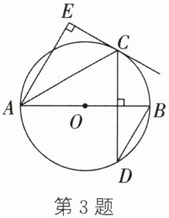 3. 如图,AB为⊙O的直径,弦CD⊥AB,AC平分∠EAB,∠E= 90°.