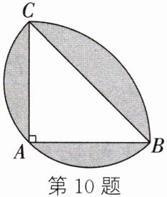 10. 如图,在等腰直角三角形ABC中,$AB= AC= \sqrt {2}$,以点A为圆心,AB为半径作$\overset{\frown }{BC}$,以BC为直径作$\overset{\frown }{CAB}$,则图中涂色部分的面积是______.