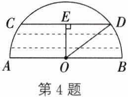 4. 如图所示为一个半圆形桥洞的截面示意图,圆心为O,直径AB是河底线,弦CD是水位线,$CD// AB,AB= 10m,OE⊥CD$于E,此时测得$OE:CD= 3:8$.
