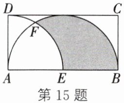 15. (2024·资阳)如图,在矩形ABCD中,$AB= 4,AD= 2$.以点A为圆心,AD为半径画弧,交AB于点E,再以AB为直径作半圆,与$\widehat {DE}$交于点F,则图中涂色部分的面积为____.