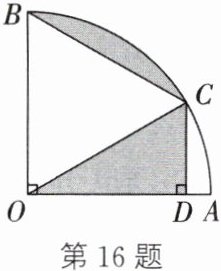 16. 如图,在扇形OAB中,$OA= OB= 2,∠AOB= 90^{\circ }$,C为$\widehat {AB}$上一点,$∠AOC= 30^{\circ }$,连接BC,过点C作OA的垂线,垂足为D,求涂色部分的面积.