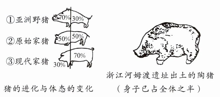 6. (青岛)研究表明,野生动物被饲养后,体态和骨骼会发生明显的变化。分析下图信息可知 (