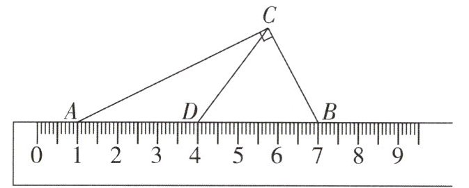 对点训练5 (2024·南山区一模)一技术人员用刻度尺(单位:cm)测量某三角形部件的尺寸. 如图所示,已知∠ACB=90°,点D为边AB的中点,点A,B对应的刻度分别为1,7,则CD=(