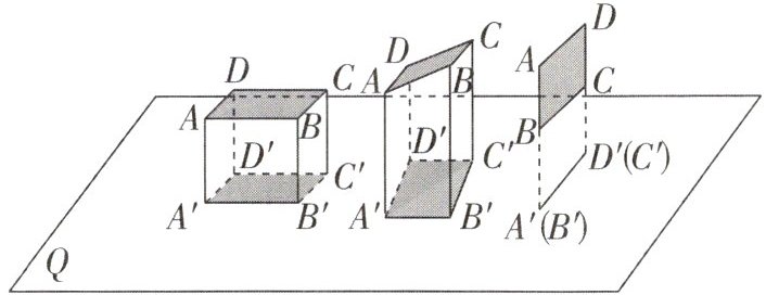 (3)当平面图形垂直于投影面Q时,它的正投影是直线或直线的一部分.