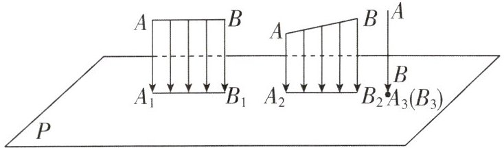 (3)线段AB垂直于投影面P时,它的正投影是一个点.