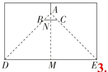 3. 在长、宽都为4m,高为3m的房间的正中央的天花板上悬挂着一只白炽灯泡A,为了集中光线,加上了灯罩(如图所示). 已知灯罩深$AN=8cm$,灯泡离地面2m,为了使光线恰好照在墙对角D,E处,灯罩的直径BC应为多少? (结果保留两位小数,$\sqrt {2}\approx 1.414$)