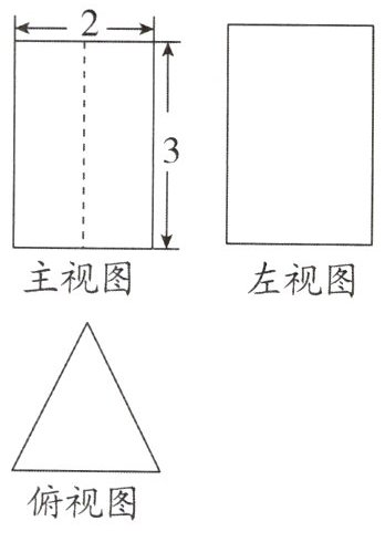 解:由三视图得,该几何体为正三棱柱,上、下底是边长为2的等边三角形,每个侧面都是长为3,宽为2的矩形.如图,在等边三角形ABC中,作AD⊥BC于点D,则BD=$\frac{1}{2}$BC=1.在Rt△ABD中,AD=$\sqrt{AB² - BD²}$ = $\sqrt{2² - 1²}$ = $\sqrt{3}$.