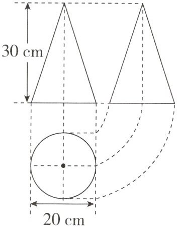 解:由三视图可知,该几何体为圆锥,圆锥的底面直径为20cm,圆锥的高为30cm,