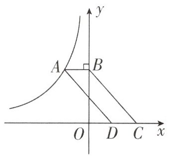 5. 如图,点A是反比例函数$y=\frac{k}{x}$图象上一点,过点A作$AB⊥y$轴于点B,点C,D在x轴上,且$BC// AD$,若四边形ABCD的面积为4,则$k=$