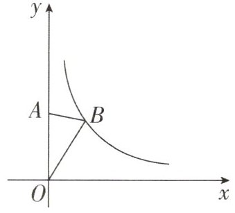 3. 如图,点A是y轴正半轴上的一个定点,点B是反比例函数$y=\frac{1}{x}(x>0)$图象上的一个动点,当点B的纵坐标逐渐增大时,$\triangle OAB$的面积将(