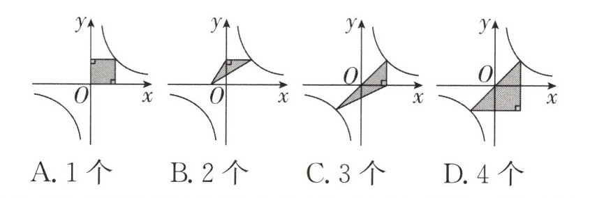 对点训练2 下面四个图中反比例函数的表达式均为$y=\frac{3}{x}$,则阴影部分图形的面积为3的有(