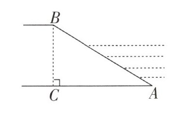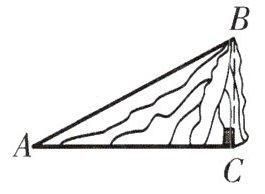 对点训练3 如图,某人从山脚下的点$A$走了$150m$后到达山顶的点$B$。已知点$B$到点$A$的垂直距离是$90m$,求山坡的坡度。