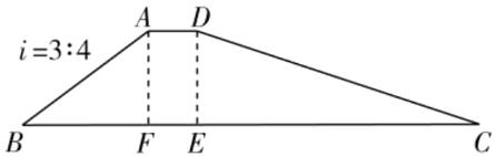 【例2】为了防洪需要,某地决定新建一座拦水坝.如图,拦水坝的横断面为梯形ABCD,斜面坡度$i = 3:4$是指坡面的铅直高度AF与水平宽度BF的比.已知斜坡CD的长度为20米,$\angle C = 18^{\circ}$,求斜坡AB的长.(结果精确到0.1米)(参考数据:$\sin18^{\circ} \approx 0.31,\cos18^{\circ} \approx 0.95,\tan18^{\circ} \approx 0.32$)