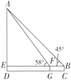 $\therefore AE = BE \cdot \tan 45^{\circ} = BE$,$EF = \frac{AE}{\tan 58^{\circ}}$。