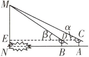 (2)在测点A与物体之间的B处安置测倾器,测得此时M的仰角为∠MDE=β;