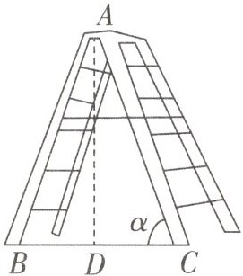 3. 如图,人字梯AB,AC的长都为2米.当α=50°时,人字梯顶端到地面的高度AD是