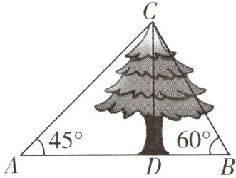 2. 如图,某数学兴趣小组测量一棵树CD的高度,在点A处测得树顶C的仰角为45°,在点B处测得树顶C的仰角为60°,且A,B,D三点在同一直线上,若AB=12m,则这棵树CD的高度是( ).