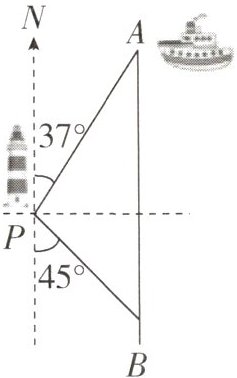 3. 如图,一艘海轮位于灯塔P的北偏东37°方向,距离灯塔100海里的A处,它沿正南方向航行一段时间后,到达位于灯塔P的南偏东45°方向上的B处.这时,B处距离A处有多远?(参考数据:sin37°≈0.60,cos37°≈0.80,tan37°≈0.75)