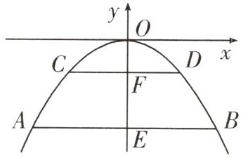 7. 如图,$A$,$B$,$C$,$D$四点在抛物线$y = ax^{2}$上,且$AB // CD // x$轴,与$y$轴的交点分别为$E$,$F$,已知$AB = 20$,$CD = 10$,$EF = 3$,求$a$的值及$OF$的长。