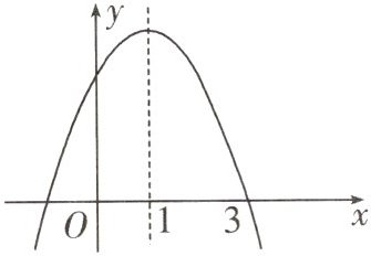 C 解析:$ \because $ 抛物线开口向下,$ \therefore a < 0 $;$ \because b = -2a $,$ \therefore b > 0 $,$ \because $ 抛物线与 $ y $ 轴交点在 $ x $ 轴上方,$ \therefore c > 0 $,$ \therefore $ ①正确,符合题意。由图象可得当 $ x = -1 $ 时,$ y < 0 $,根据抛物线对称性可得 $ x = 3 $ 时,$ y < 0 $,$ \therefore 9a + 3b + c < 0 $,②错误,不符合题意。$ \because $ 图象与 $ x $ 轴有两个不同的交点,$ \therefore 4ac - b^{2} < 0 $,③正确,符合题意。$ \because x = -1 $,$ y < 0 $,$ \therefore a - b + c < 0 $,$ \because b = -2a $,$ \therefore 3a + c < 0 $,④正确,符合题意。$ \therefore $ 正确的有①③④。
