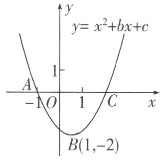 对点训练1 如图,已知二次函数$y = x^{2}+bx + c$的图象经过点$(-1,0)$,$(1,-2)$,该图象与x轴的另一个交点为C,则AC的长为