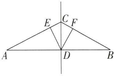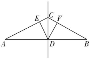 **例3** 如图,点$D$是线段$AB$的中点,点$C$是线段$AB$的垂直平分线上的任意点,$DE\perp AC$于点$E$,$DF\perp BC$于点$F$.