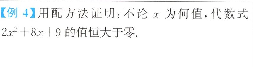 所以不论$x$为何值,代数式$2x^{2}+8x + 9$的值恒大于零。
