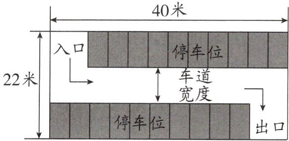 4. (2024秋·南山区校级期中)如图是某地下停车场的平面示意图,停车场的长为40m,宽为22m。停车场内车道的宽都相等,若停车位的占地面积为520m²。求车道的宽度(单位:m)。设停车场内车道的宽度为xm,根据题意所列方程为(