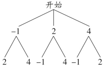 6. 不透明的袋子中装有形状、大小、质地完全相同的三张卡片,每张卡片标有一个数字,这三张卡片分别标有数字-1,2,4,从袋子中随机摸出两张卡片,这两张卡片的数字乘积为负数的概率为____。