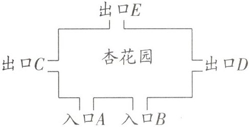 4. (2024秋·深圳月考)小明去“满阶芳草绿,一片杏花香”的杏花园赏花. 如图,杏花园有两个入口、三个出口,则嘉嘉从入口B进入,从出口D离开的概率为(