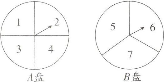 16. (2024秋·宝安区校级月考)在某次数学活动中,有两个如图所示的转盘A,B,转盘A被分成四个相同的扇形,分别标有数字1,2,3,4,转盘B被分成三个相同的扇形,分别标有数字5,6,7,指针固定不变,转动转盘(如果指针指在等分线上,那么重新转动,直至指针指在某个扇形区域内为止).