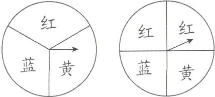 15. 小英和小丽用如图所示的两个转盘做“配紫色”游戏(红色和蓝色在一起可配成紫色),每个转盘均被分成面积相等的几个扇形,将两个转盘各转动一次,若配成紫色,则小英获胜,否则小丽获胜,则小英获胜的概率是