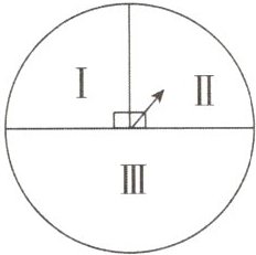 14. 如图是一个游戏转盘,连续自由转动转盘两次(如果落在分隔线上,则重新转动,直至转到其中一块区域),则两次转动指针都落在数字“Ⅲ”所示区域内的概率是(