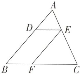 4. 如图,已知在$ \triangle A B C $中,点$ D $,$ E $,$ F $分别是边$ A B $,$ A C $,$ B C $上的点,$ D E // B C $,$ E F // A B $,且$ A D : D B = 3 : 5 $,那么$ C F : C B $等于