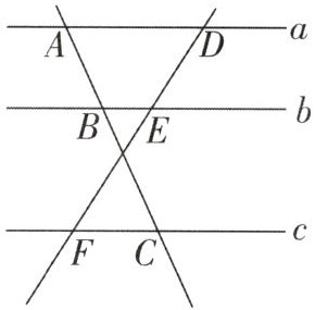 1. 如图,已知直线$ a // b // c $,若$ A B = 2 $,$ B C = 3 $,$ E F = 2.5 $,则$ D F = $