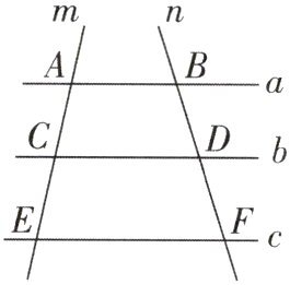 3. 如图,直线$ a // b // c $,分别交直线$ m $,$ n $于点$ A $,$ C $,$ E $,$ B $,$ D $,$ F $,下列结论不正确的是(
