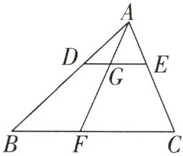 6. 如图,在$ \triangle A B C $中,点$ D $,$ E $分别为$ A B $,$ A C $边上的点,连接$ D E $,且$ D E // B C $,点$ F $为$ B C $边上一点,连接$ A F $交$ D E $于点$ G $,则下列结论中一定正确的是(