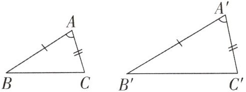 的两个三角形相似. 几何语言:如图,∵$\frac {AB}{A'B'}=\frac {AC}{A'C'}$,$∠A = ∠A'$,∴$\triangle ABC \backsim \triangle A'B'C'$.