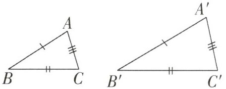 的两个三角形相似.几何语言:如图,$\because \frac {AB}{A'B'}=\frac {BC}{B'C'}=\frac {AC}{A'C'},\therefore △ABC\backsim △A'B'C'.$