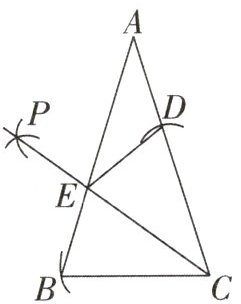 6. 如图,在$\triangle ABC$中,$AB=AC$,$∠BAC=36^{\circ }$,以点C为圆心,以BC为半径作弧交AC于点D,再分别以B,D为圆心,以大于$\frac {1}{2}BD$的长为半径作弧,两弧相交于点P,作射线CP交AB于点E,连接DE。以下结论不正确的是(