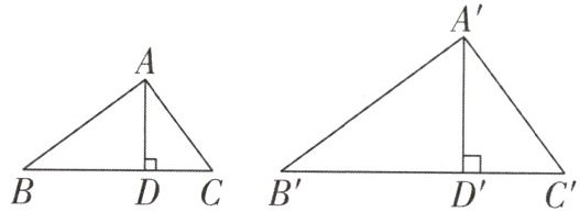 4. 如图,$\triangle A B C \backsim \triangle A ^ { \prime } B ^ { \prime } C ^ { \prime }$,$AD$和$A'D'$分别是$\triangle ABC$和$\triangle A'B'C'$的高,若$A D = 2$,$A ^ { \prime } D ^ { \prime } = 3$,则$\triangle A B C$与$\triangle A ^ { \prime } B ^ { \prime } C ^ { \prime }$的面积比为(