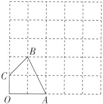 对点训练3(根据九年级北师大版教材P115第2题改编)在边长为1的 $ 5 × 5 $ 方格中,有一个四边形 $ OABC $,以点 $ O $ 为位似中心,作一个四边形,使得所作四边形与四边形 $ OABC $ 位似,且该四边形的各个顶点都在格点上。