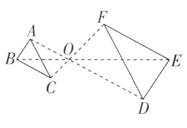 1. 如图,$ \triangle ABC $ 与 $ \triangle DEF $ 位似,位似中心为点 $ O $。若 $ \triangle ABC $ 的周长与 $ \triangle DEF $ 的周长比为 $ \frac{4}{9} $,则 $ AO : DO = $